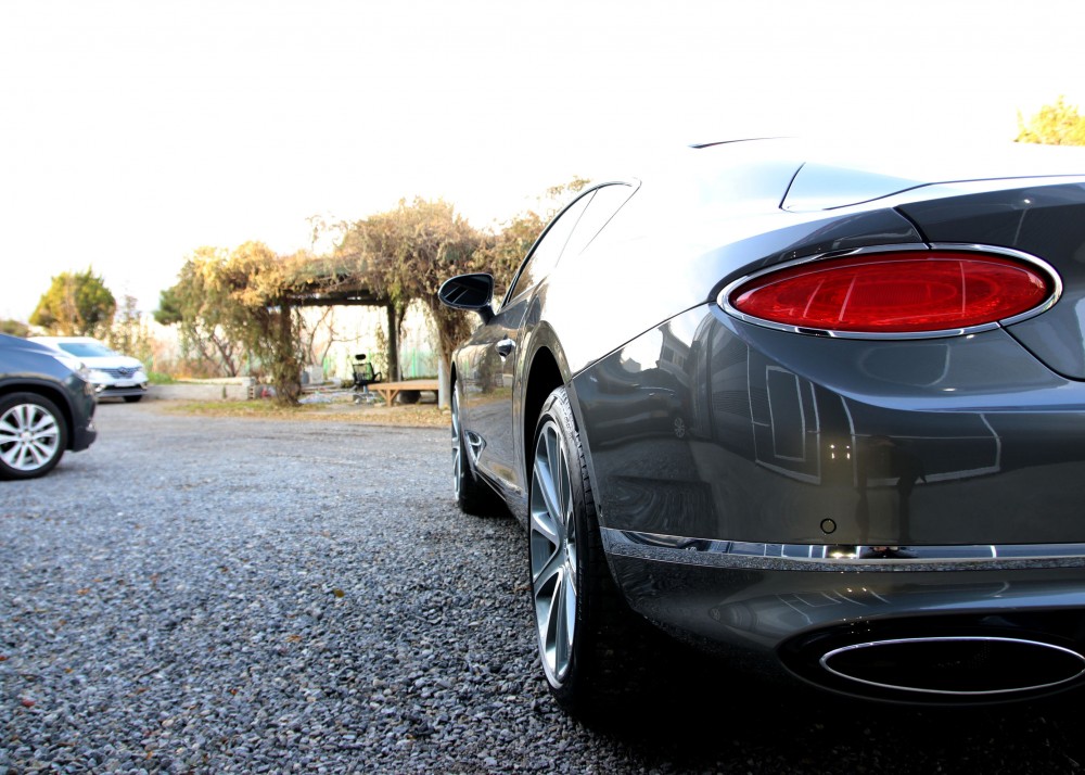 벤틀리 뉴 컨티넨탈 GT는 감탄을 자아낼 만큼 매끈한 리어뷰를 갖고 있습니다. 사이즈가 작은 쿠페형 자동차는 상상하기도 힘들만큼 뒷쪽으로 넘어오며 시원하게 떨어지는 라인과 풍부하게 잡아주는 쿼터패널 라인. 심플리즘 코드로 해석해낸 테일램프는 아래의 유사한 타원형 디자인의 두 머플러와 함께 단조로움과 분명함을 함께 표현해냅니다. 저 타원형의 테일램프는 그 작은 램프 안에서 테일램프의 기능을 깔끔하게 거의 다 탑재했고 후진등은 범퍼 아래쪽으로 따로 빼놓았습니다. 머플러의 사운드는 튜닝을 하지 않아도 경쾌하고 우렁차며 12기통에서 우러나는 울림소리가 운전자의 마음을 설레게 합니다.