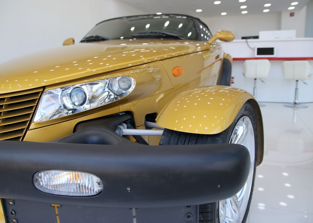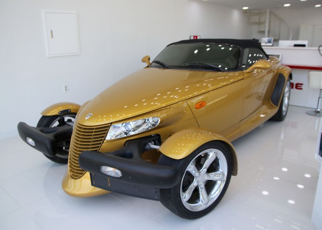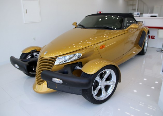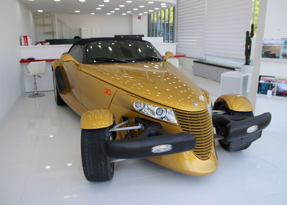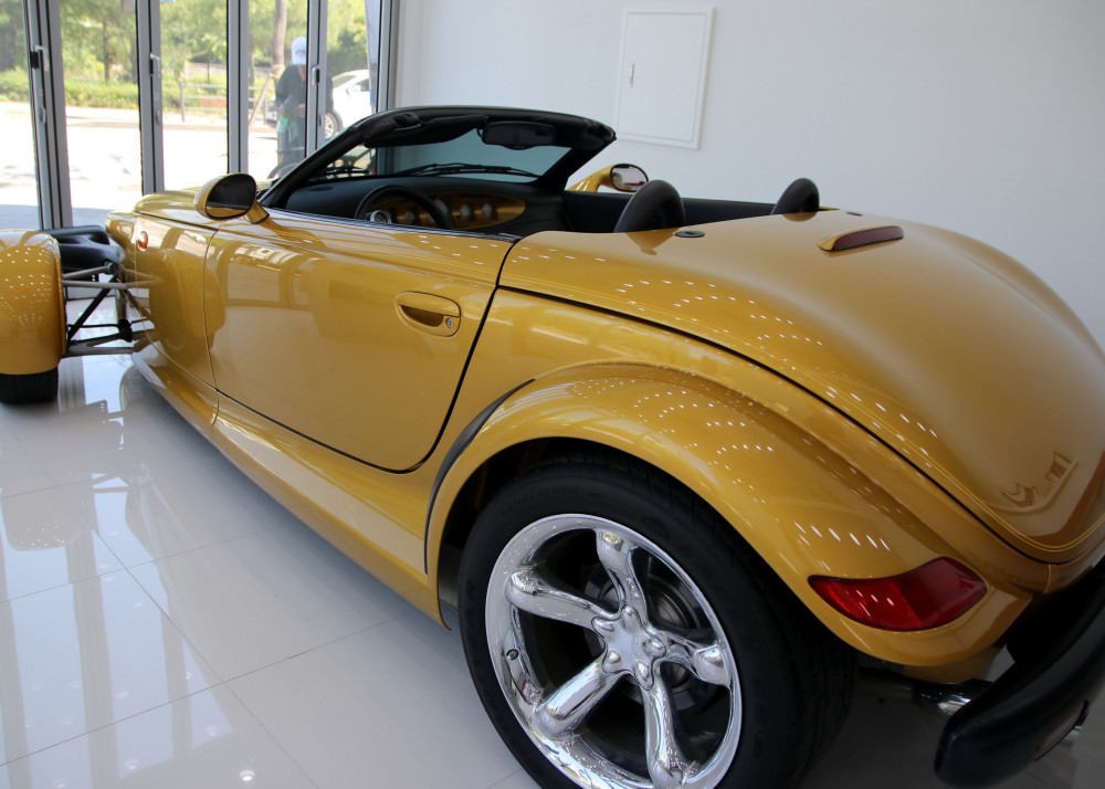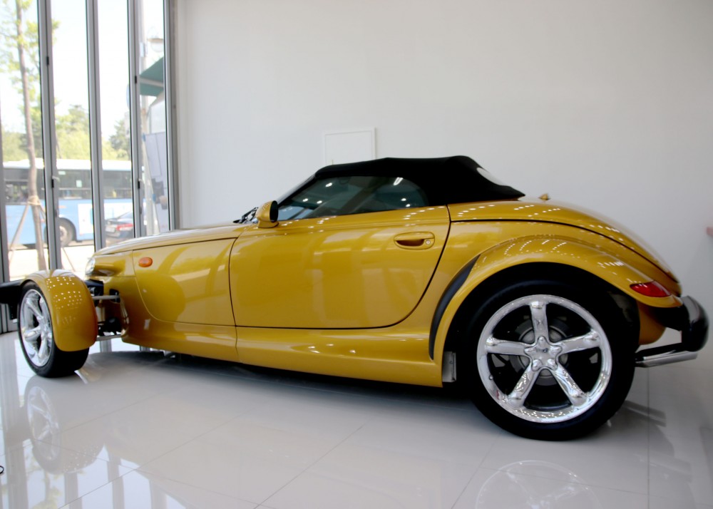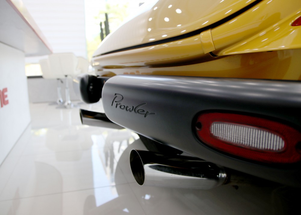 프라울러는 '핫로드'타입의 레트로 스포츠카 디자인으로 설계되어 있지만 불과 2002년까지 생산이 되었습니다. 로드마인에 전시되어 있는 이 매물은 마지막 모델이기 때문에 프라울러에 있어선 가장 최근 연식이라고 볼 수 있겠습니다. 97년에 초기 모델이 나왔을 때 241마력이었으나 98년에 1년간 생산을 쉬면서 업그레이드를 하게 되는데 99년에 다시 생산을 하면서 다양한 색상 선택지와 함께 3.5L 6기통 엔진에 253마력, 제로백이 6초대를 기록하는 재미있는 차량으로 거듭나게 됩니다.